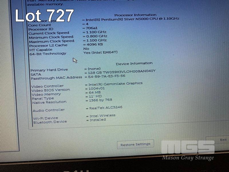 LAPTOP, DELL LATITUDE 3190, PENTIUM SILVER N5000 @ 1.1GHz, 4GB DDR4 RAM, 128GB M.2 SSD, 11.6" WIDESCREEN (1366x768), INTEL UHD GRAPHICS 605, Wi-Fi, BLUETOOTH, WINDOWS 11 PRO EDUCATION INSTALLED & POWER SUPPLY S/N:96966S2