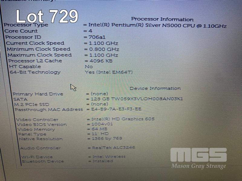 LAPTOP, DELL LATITUDE 3190, PENTIUM SILVER N5000 @ 1.1GHz, 4GB DDR4 RAM, 128GB M.2 SSD, 11.6" WIDESCREEN (1366x768), INTEL UHD GRAPHICS 605, Wi-Fi, BLUETOOTH, WINDOWS 11 PRO EDUCATION INSTALLED & POWER SUPPLY S/N:FKP56S2