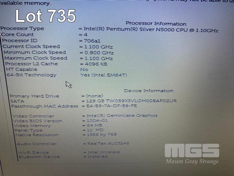 LAPTOP, DELL LATITUDE 3190, PENTIUM SILVER N5000 @ 1.1GHz, 4GB DDR4 RAM, 128GB M.2 SSD, 11.6" WIDESCREEN (1366x768), INTEL UHD GRAPHICS 605, Wi-Fi, BLUETOOTH, WINDOWS 11 PRO EDUCATION INSTALLED & POWER SUPPLY S/N:G3Z66S2