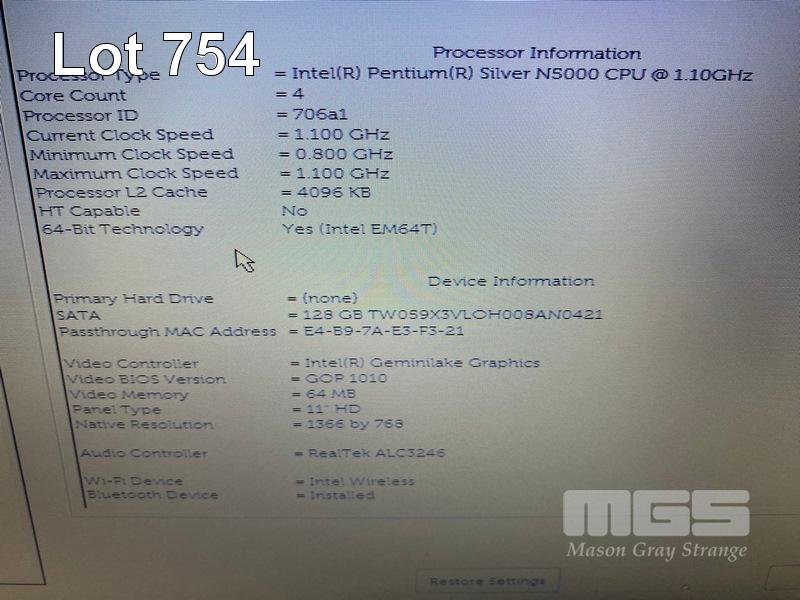 LAPTOP, DELL LATITUDE 3190, PENTIUM SILVER N5000 @ 1.1GHz, 4GB DDR4 RAM, 128GB M.2 SSD, 11.6" WIDESCREEN (1366x768), INTEL UHD GRAPHICS 605, Wi-Fi, BLUETOOTH, WINDOWS 11 PRO EDUCATION INSTALLED & POWER SUPPLY (NOTE:MISSING LEFT SCREEN HINGE COVER) S/N:DRR66S2