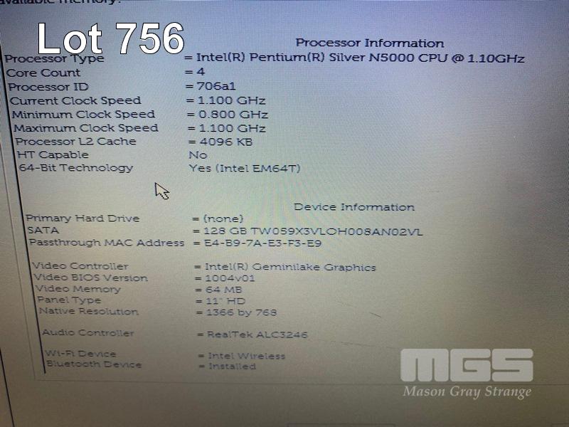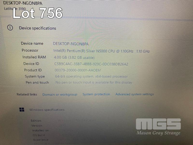LAPTOP, DELL LATITUDE 3190, PENTIUM SILVER N5000 @ 1.1GHz, 4GB DDR4 RAM, 128GB M.2 SSD, 11.6" WIDESCREEN (1366x768), INTEL UHD GRAPHICS 605, Wi-Fi, BLUETOOTH, WINDOWS 11 PRO EDUCATION INSTALLED & POWER SUPPLY (NOTE: SCRATCHES ON SCREEN) S/N:DRJ56S2