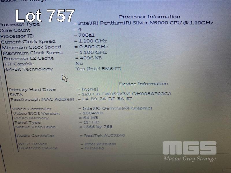LAPTOP, DELL LATITUDE 3190, PENTIUM SILVER N5000 @ 1.1GHz, 4GB DDR4 RAM, 128GB M.2 SSD, 11.6" WIDESCREEN (1366x768), INTEL UHD GRAPHICS 605, Wi-Fi, BLUETOOTH, WINDOWS 11 PRO EDUCATION INSTALLED & POWER SUPPLY (NOTE: SCRATCHES ON SCREEN) S/N:BY176S2