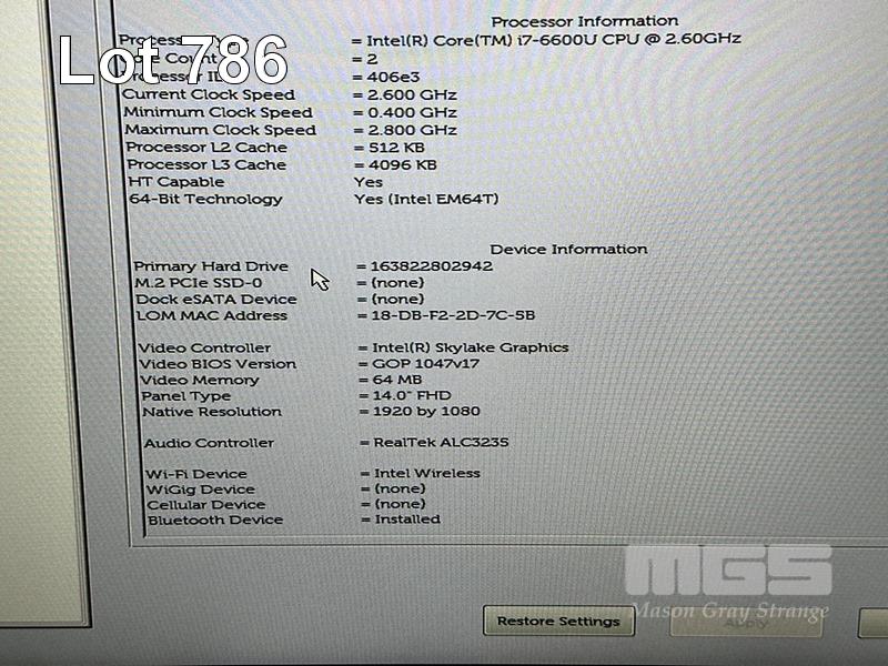 LAPTOP, DELL LATITUDE E7470, CORE i7 6600U (6TH GEN) @ 2.6GHz, 16GB DDR4 RAM, 256GB M.2 SSD, 14" WIDESCREEN (1920x1080), INTEL HD GRAPHICS 520, Wi-Fi, BLUETOOTH, WINDOWS 10 HOME INSTALLED, DOCKING STATION & POWER SUPPLY (NOTE: NOT DETECTING BATTERY) S/N:6CM7CG2