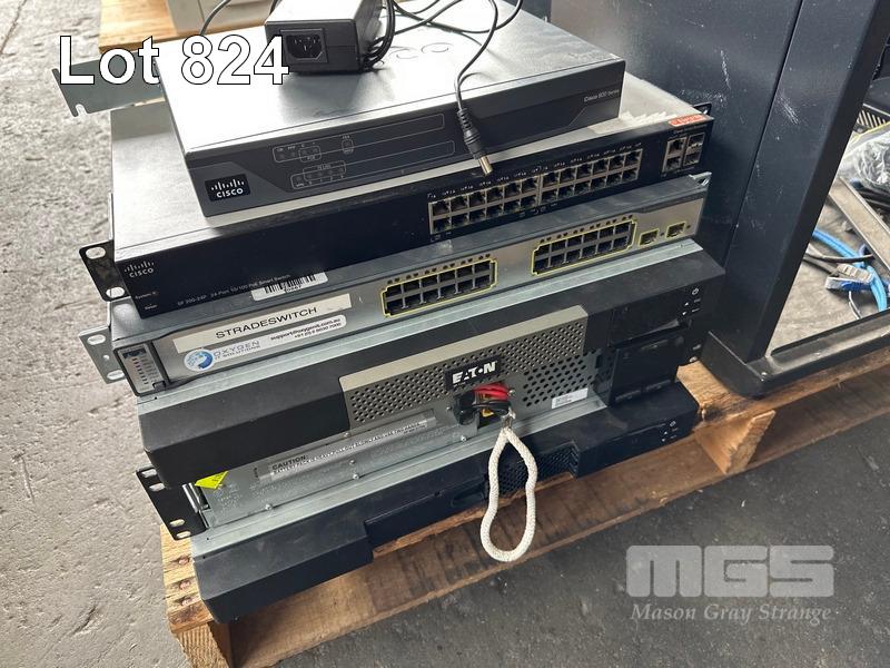 DATA RACK FRAME & NETWORKING INC. - NETGEAR 16-PORT SWITCH - HIKVISION NETWORK VIDEO RECORDER, DS-WSELI-T4/16P - CISCO ME 3400E SERIES SWITCH - CISCO 800 SERIES ROUTER - CISCO SF 200-24P 24-PORT SWITCH - EATON 5P UPS ETC.