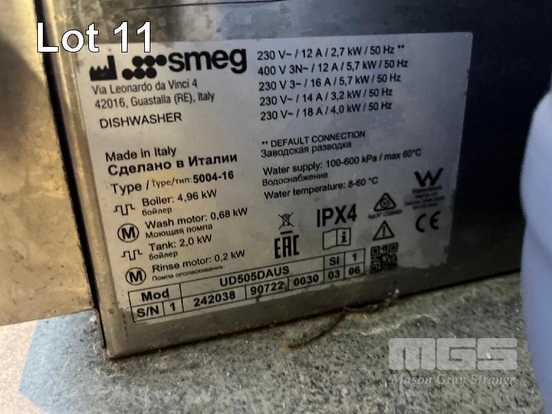 COMMERCIAL GLASSWASHER, SMEG MOD: UD505DAUS 2 x GALSS TRAYS, 500 x 500mm STAINLESS STEEL CONSTRUCTION 240V