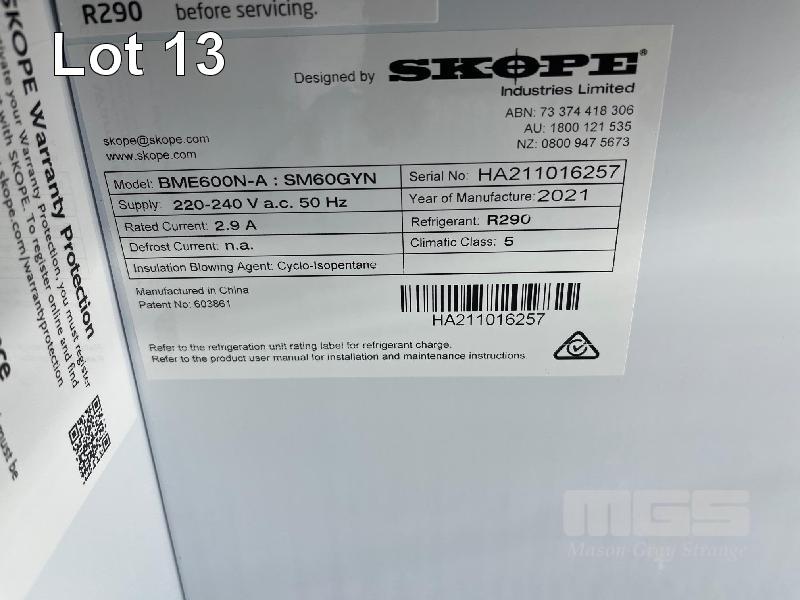 SINGLE DOOR DISPLAY FRIDGE, SKOPE MOD: BME600N-A:5SM60GYN DOM: 2021 600 LITRE CAPACITY ILLUMINATED, DIGITAL DISPLAY ADJUSTABLE SLIDING SHELVES, 240V