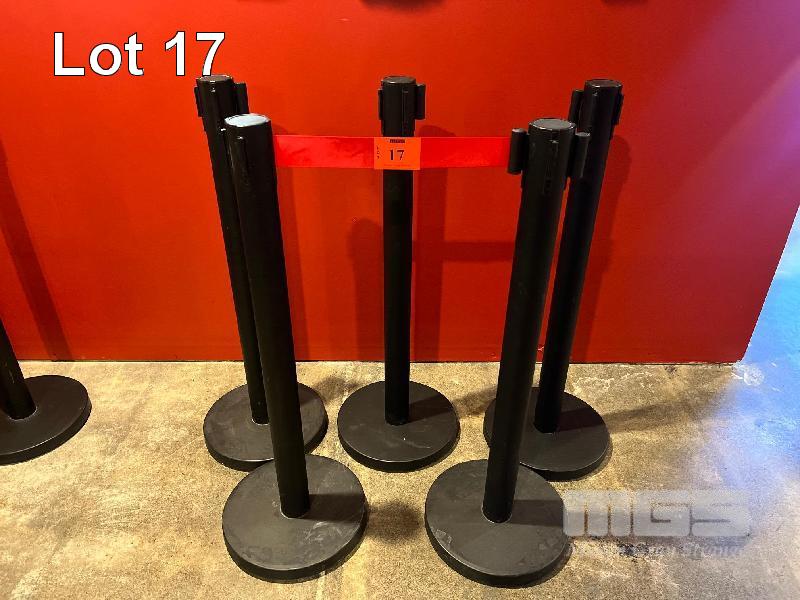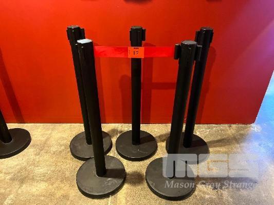 5 x SECURITY BOLLARDS, 900mm (H), BLACK WITH RED BELT