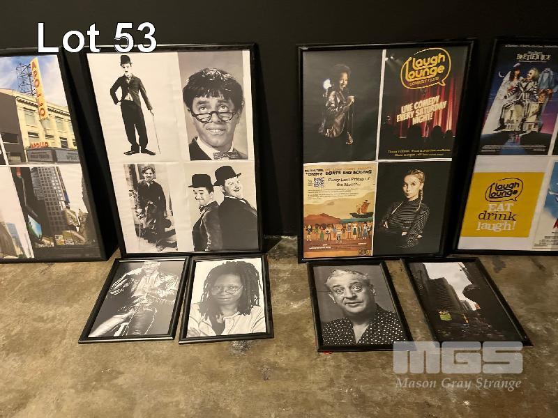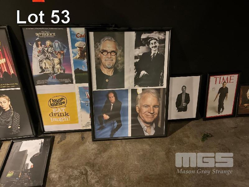 14 x FRAMED COMEDIANS POSTERS, INCLUDING JERRY LEWIS, CHRIS ROCK, LUCILLE BALL, JERRY SEINFELD, RODNEY DANGERFIELD, THE GREAT GROUCHO MARX & MORE