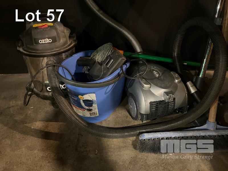 2 x VACUUM CLEANERS, MOP, BUCKET & BROOM
