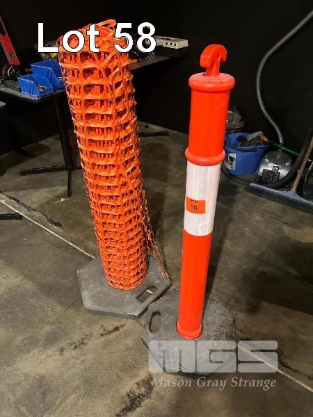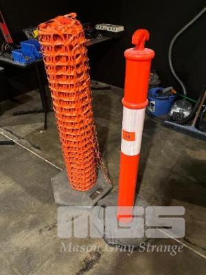 2 x SAFETY BOLLARDS & ORANGE SAFETY BARRIER