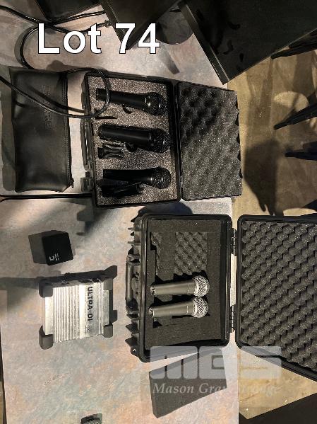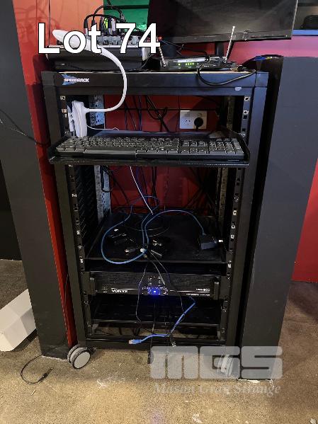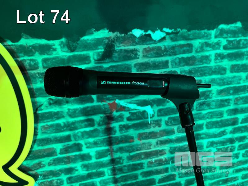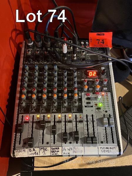 PA SYSTEM COMPRISING BEHRINGER 6 CHANNEL AUDIO DESK, 2 x VONYX SPEAKERS WITH WALL MOUNT BRACKETS, 2 x VONYX AMPLIFIERS, 2 x SHURE SM58 MICROPHONES, 3 x BEHRINGER MICROPHONES, 1 x SENNHEISER WIRELESS MICROPHONE WITH RECEIVER, 1 x BEHRINGER ULTRA DI, 2 x MIC STANDS, 3 x MONITORS, 1 x MOBILE AV RACK, 550 x 450 x 1000mm (H)