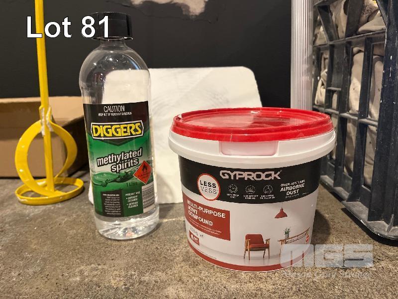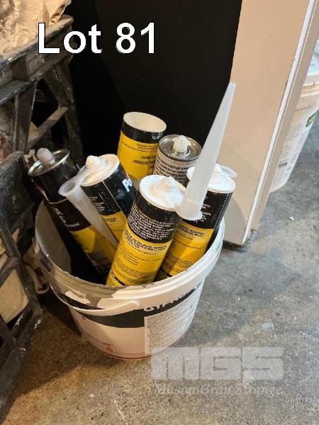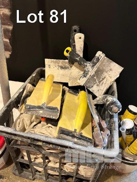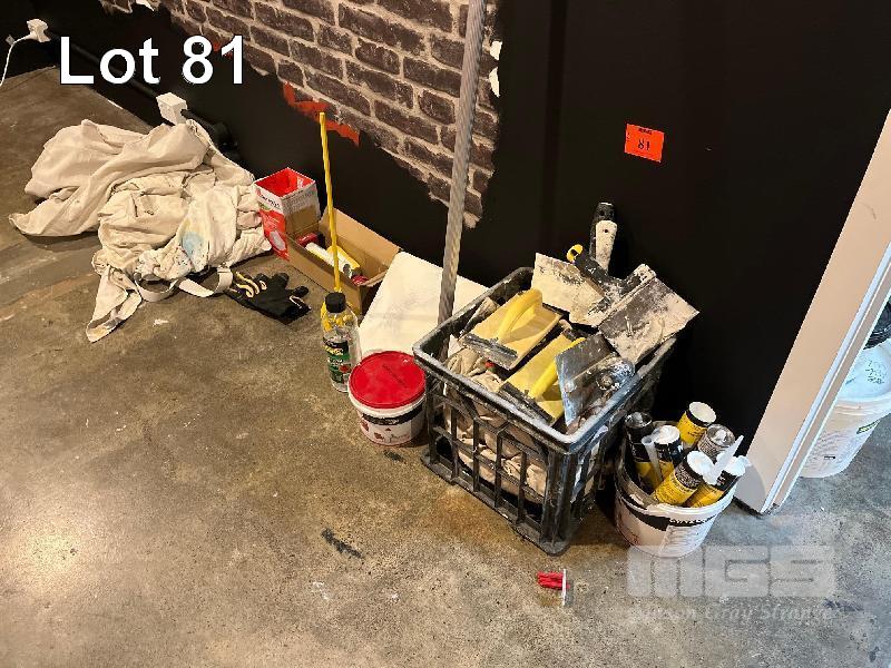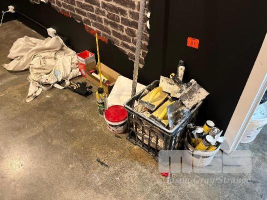 PAINTERS KIT, TOOLS, DROP SHEETS, ASSORTED PAINTS, BUCKLES, SILICONES, ETC