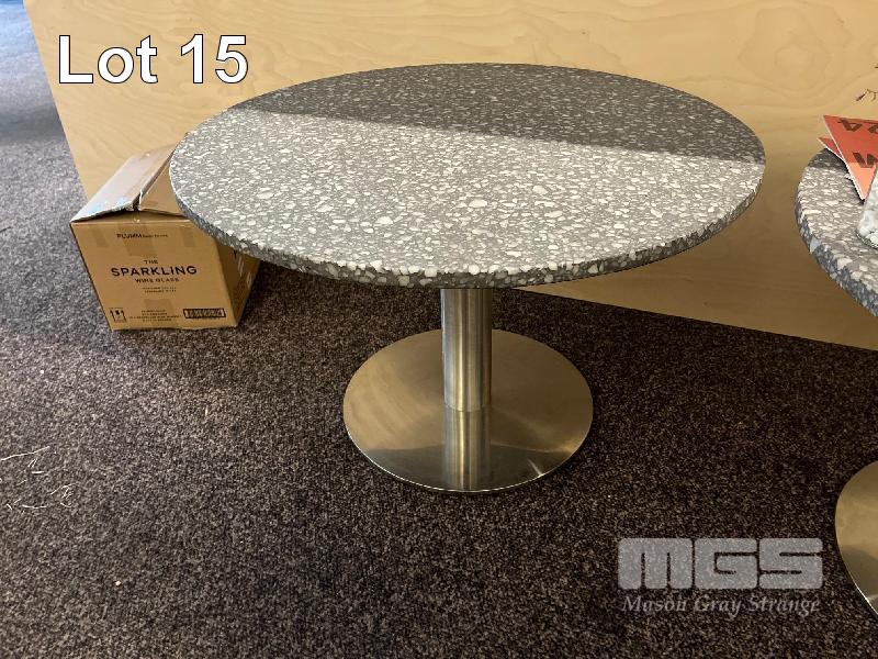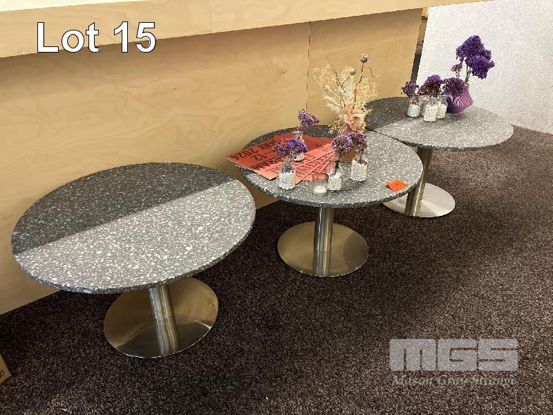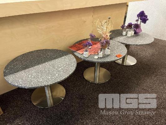 3 x EXPOSED AGGREGATE CONCRETE COFFEE TABLES, 700mm (D), CHROME PEDESTAL BASE