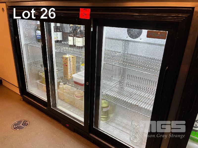 POLAR UNDER BENCH DISPLAY FRIDGE, 3 x SLIDING DOORS, MODEL: GL006-A-08, 320L CAP, ILLUMINATED, DIGITAL DISPLAY, 240V 10AMP PLUG
