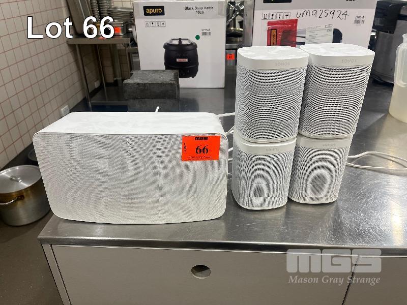 SET OF 5 x SONOS SPEAKERS, 4 - MODEL: 1S, 1 - MODEL: 5, 240V