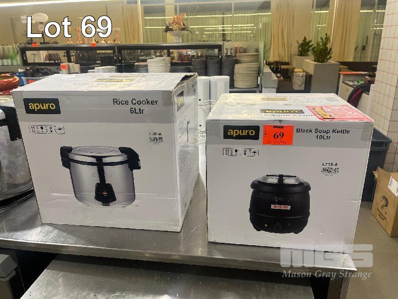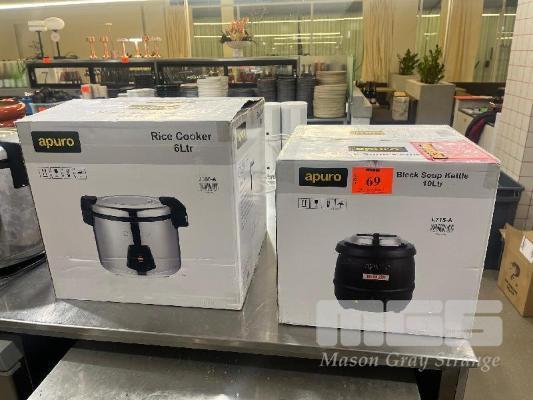 APURO BLACK SOUP KETTLE, 10L, 240V & APURO RICE COOKER, 6L 240V BOTH NEW IN BOX