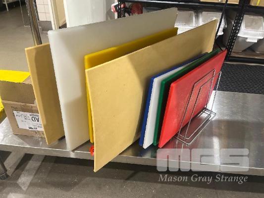 11 x ASSORTED PVC CUTTING BOARDS WITH STANDS