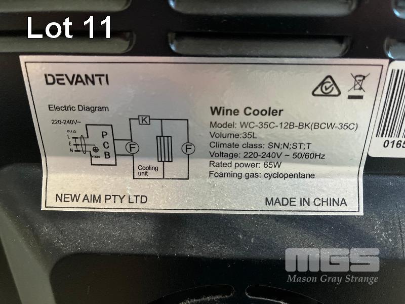 DEVANTI WINE COOLER, MODEL: WC-35C-12B-BK, 35L CAP, 240V