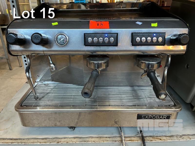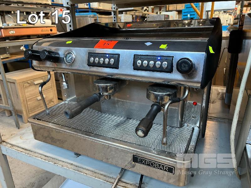 EXPOBAR ESPRESSO MACHINE MOD: MAC2C S/NO: CH086008 2 GROUP HEAD TWIN STEAMER 240V, 15 AMP PLUG