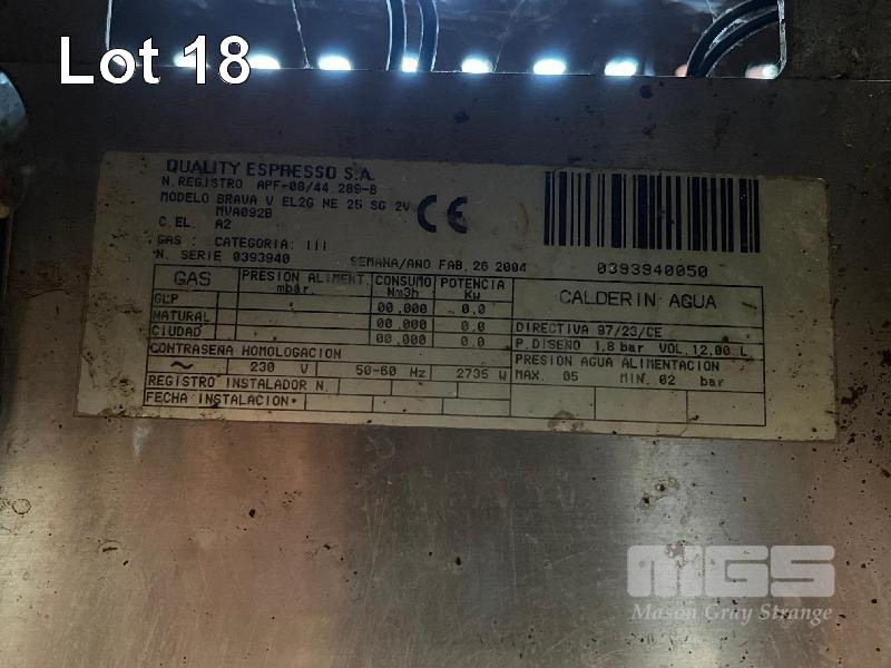 VISA CREM ESPRESSO MACHINE MOD: BRAVAVEL2GNE25SG2V 2 GROUP HEAD TWIN STEAMER 240V, 15 AMP PLUG