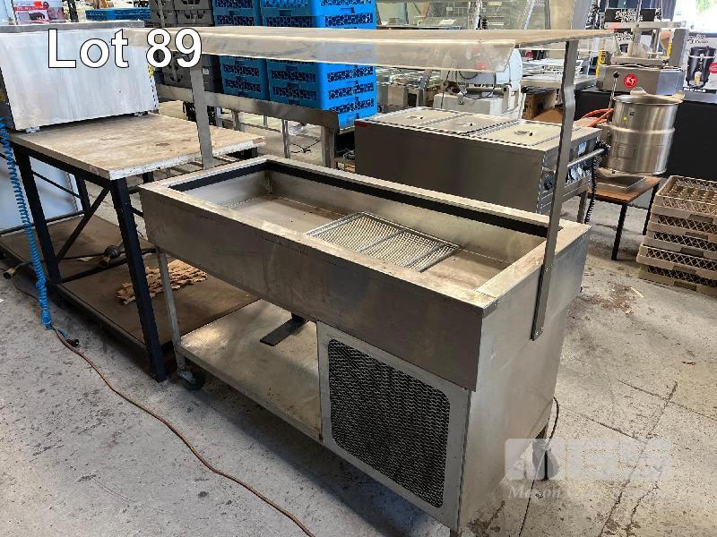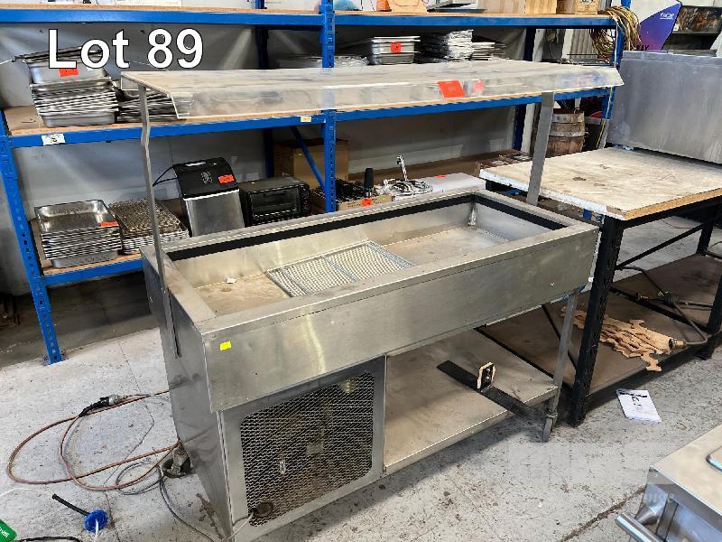 REFRIGERATED SALAD BAR, MOBILE, STAINLESS STEEL CASED, LOCKING CASTOR WHEELS, SNEEZE GUARD 1400 x 600mm 240V 10AMP PLUG