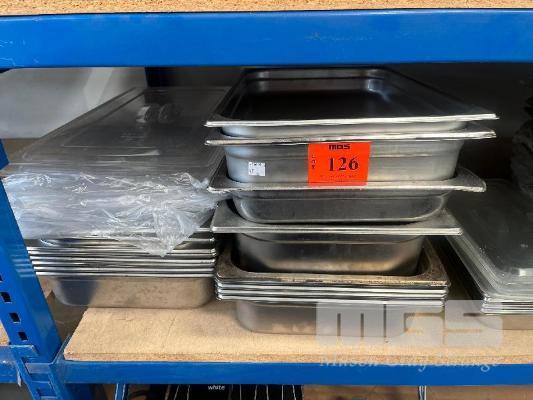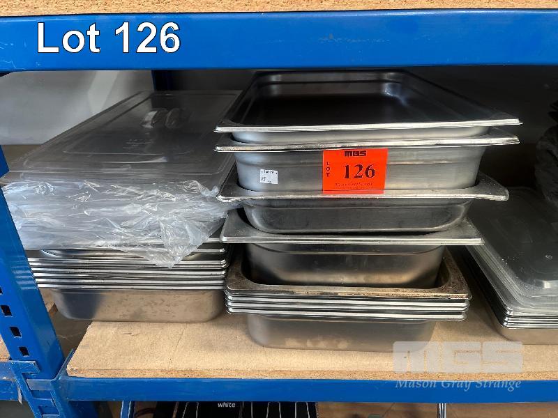 16 (APPROX) x STAINLESS STEEL, FULL SIZE, GASTRONORM TRAYS & SOME LIDS