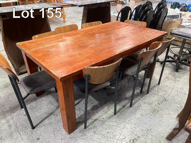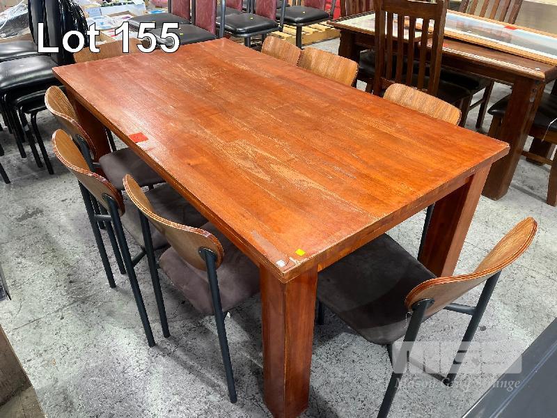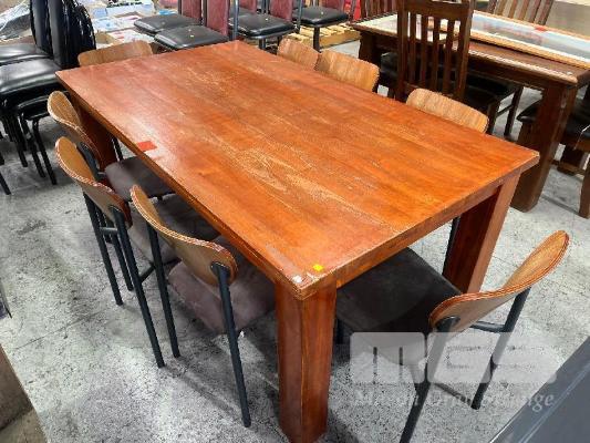 9 PIECE DINING SETTING, 1800 x 1000mm, STAINED TIMBER TABLE & 8 x MATCHING CHAIRS