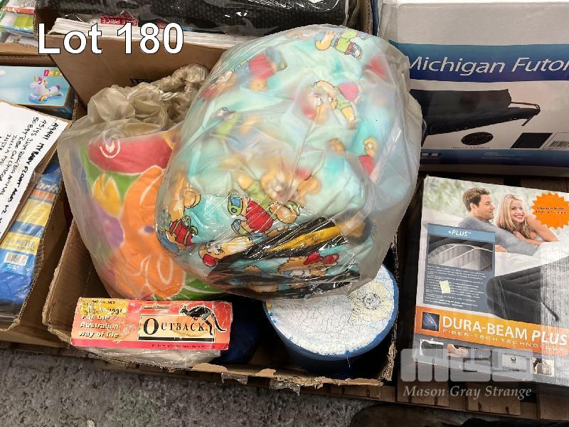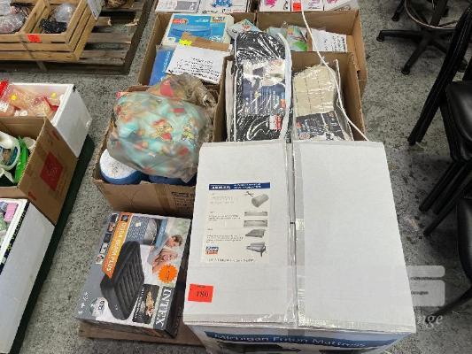 CONTENTS OF PALLET, INTEX INFLATABLE MATTRESS WITH ELECTRIC MOTOR, MICHIGAN FUTON MATTRESS, SLEEPING BAGS & NURSING PILLOWS