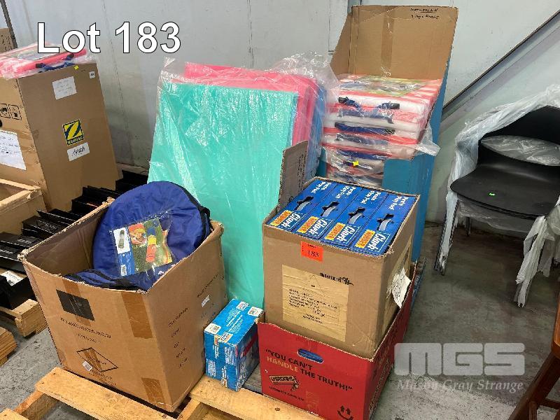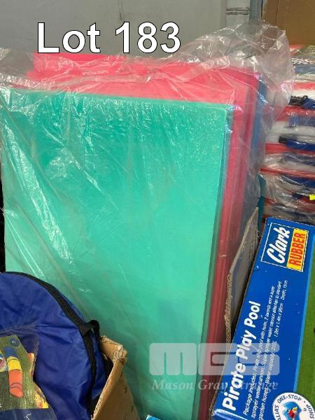 CONTENTS OF PALLET, LARGE QUANTITY INFLATABLE POOL TOYS, POP UP KIDS PLAY TUNNELS, FOAM TOYS & PLAY MATS ETC.