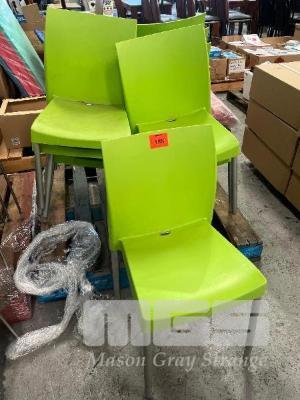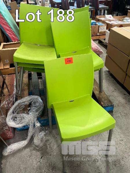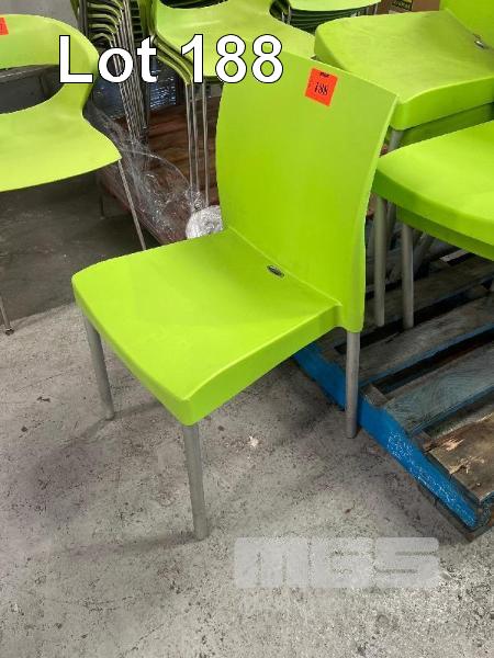 10 x GREEN PVC OUTDOOR CHAIRS, STACKABLE