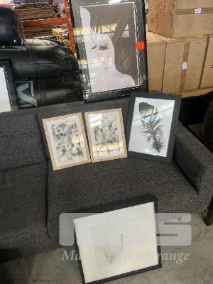 7 x GLAZED PRINTS, FROM 270 x 380mm TO 750 x 560mm