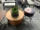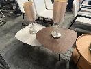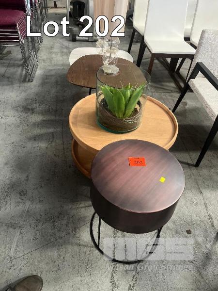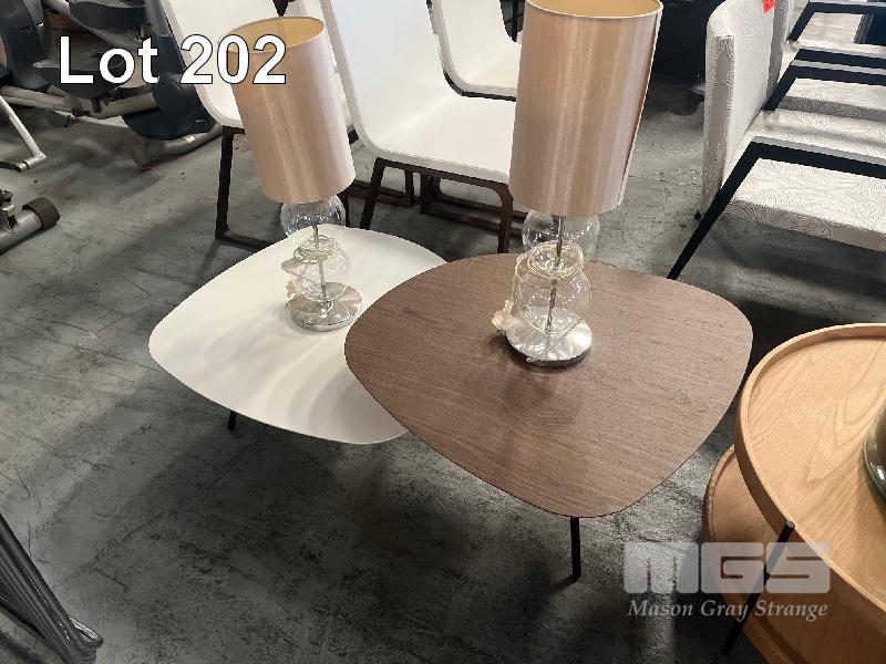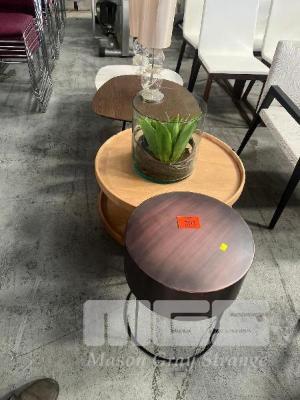 4 x ASSORTED ART DECO COFFEE TABLES, PAIR OF MATCHING TABLE LAMPS, LARGE GLASS VASE WITH ARTIFICIAL PLANT