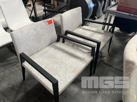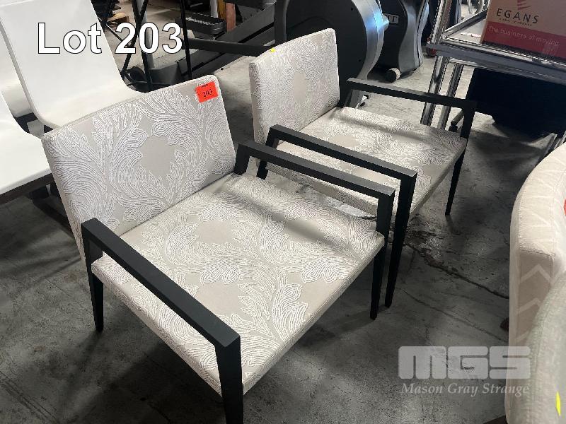 PAIR OF WHITE/CREAM CLOTH CHAIRS, TIMBER FRAME