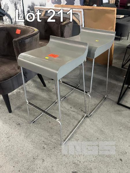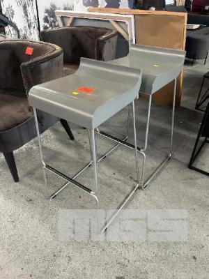 PAIR OF LIGHT GREY BAR STOOLS, CHROME FRAME, 750mm (H)