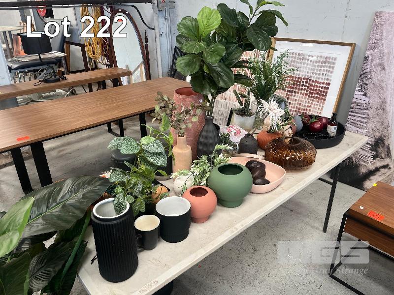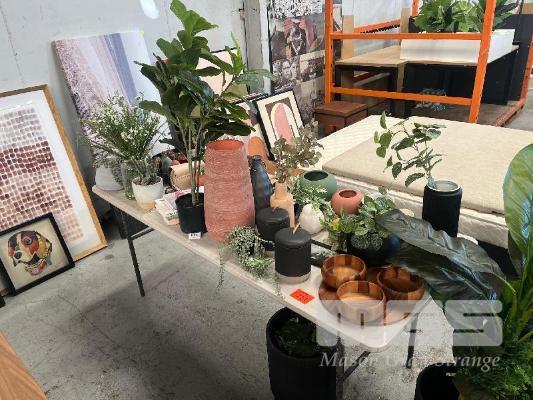CONTENTS OF TABLE, LARGE QUANTITY HOME DECORATIONS, POTS, BOOKS, FRAMES, ARTIFICIAL PLANTS ETC.