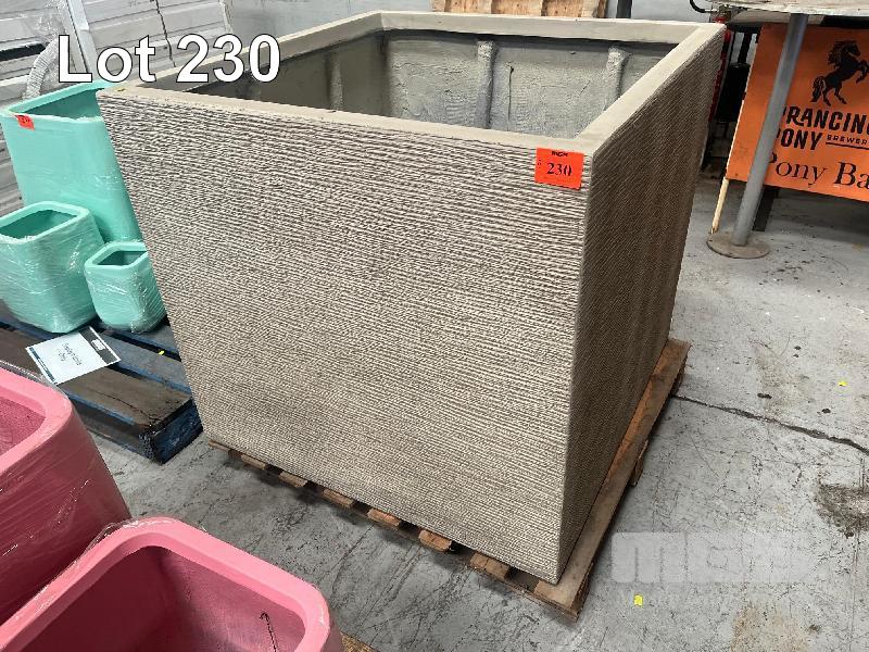 1 X GIANT CUBIC PLANTER POT. 1,060 X 1,060 X 980 MM (W D H). COLOUR WHITE BEIGE.