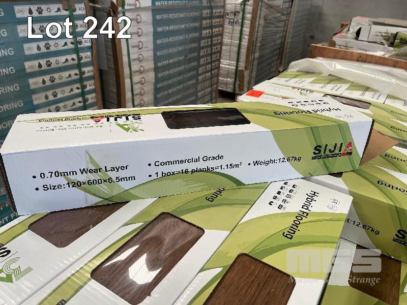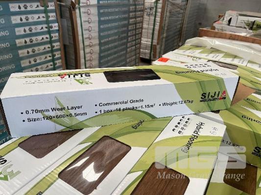 27.6m2 SIJIA HYBRID TIMBER LAMINATE FLOORING COMMERCIAL GRADE, WATER PROOF, SCRATCH PROOF, SUIT HERRINGBONE LAY PATTERN COLOUR: SPOTTED GUM TILE SIZE: 600 x 120 x 6.5mm (24 CARTONS TOTAL)