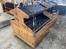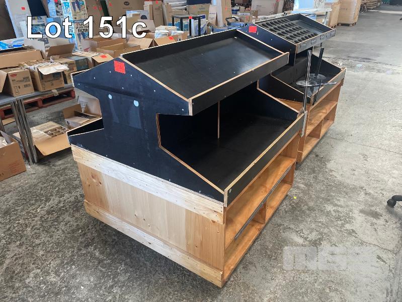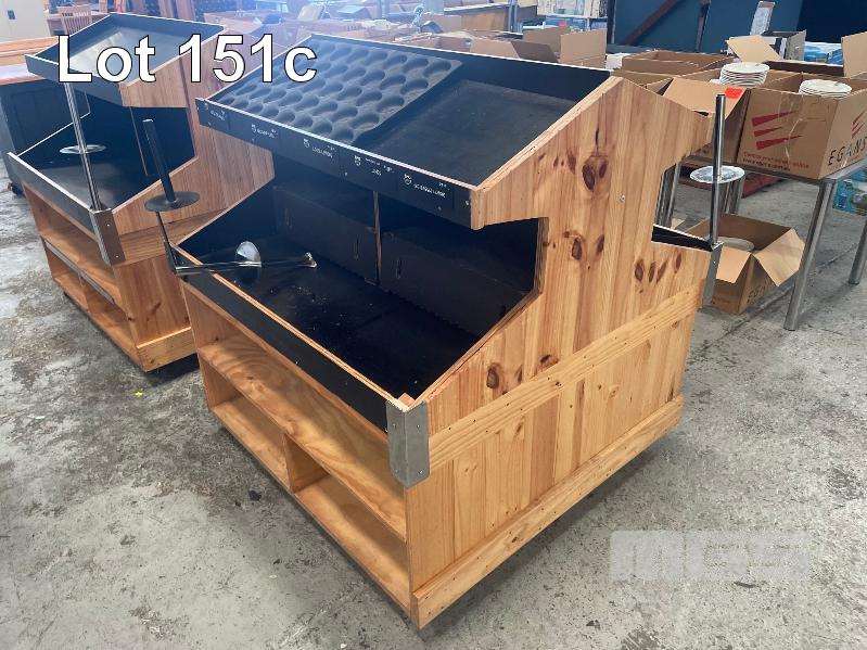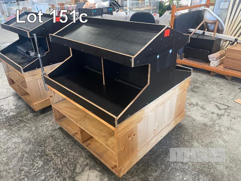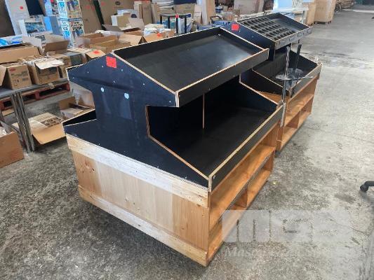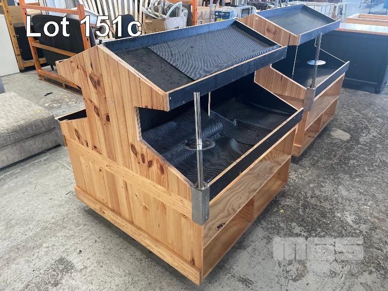 2 x TIMBER GROCERS PRODUCE STANDS, 4 TIER, DOUBLE SIDED, ON CASTOR WHEELS, 1210 x 1230 x 1330mm (H)