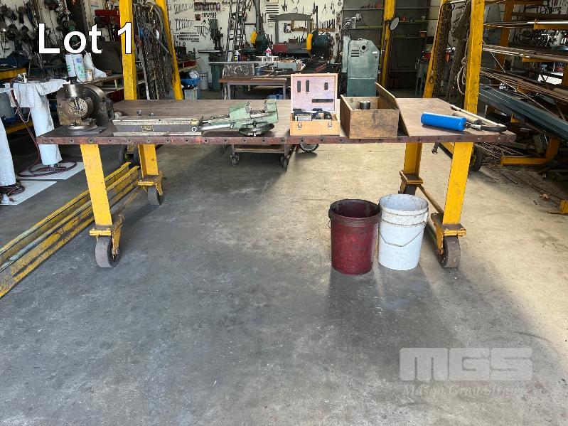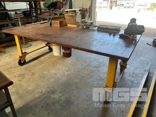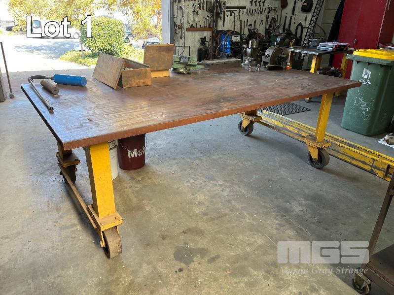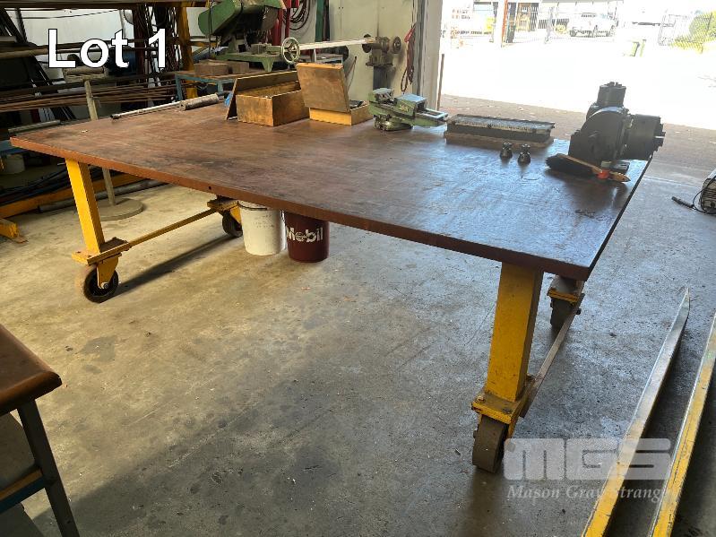 HEAVY DUTY PLATE TOP MOBILE SET UP TABLE, 2540 x 1200 x 35mm, HEAVY DUTY CASTOR WHEELS