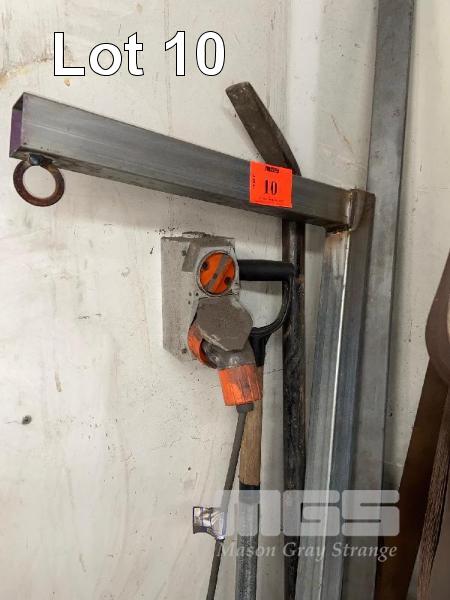 STEEL HANDLED SHOVEL, HEAVY DUTY CROW BAR & 2 x SPECIALTY RHS TUBE CLAMPS