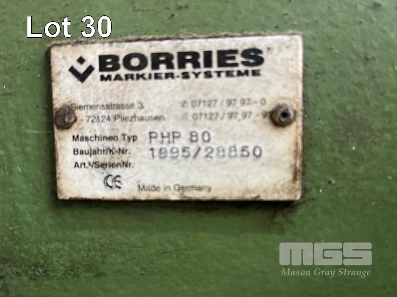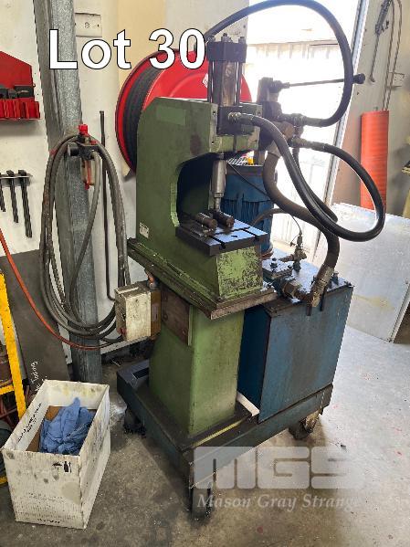 BORRIERS HYDRAULIC 'C' PRESS, MODEL: PHP80, WITH 415V HYDRAULIC PACK, 5hp/4kw, ON MOBILE BASE, HAND VALVE CONTROL