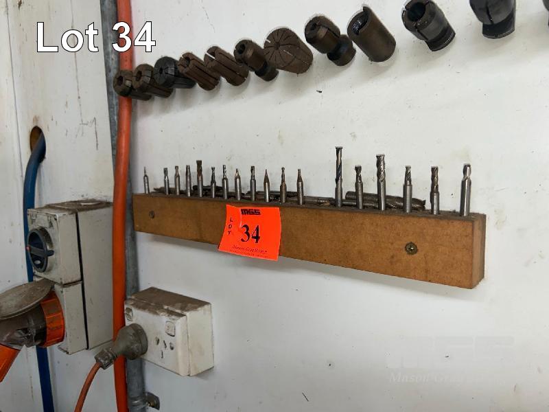 36 (APPROX) x SMALL END MILLS & TIMBER STAND STRAIGHT SHANK