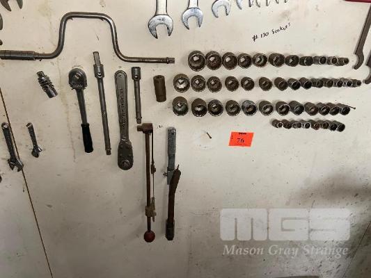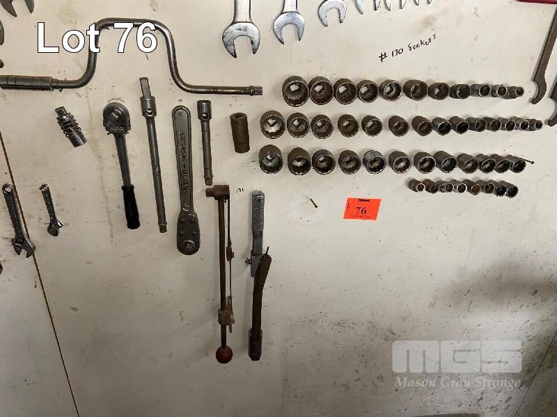 2 x 1/2" TORQUE WRENCHES WARREN & BROWN, MODEL: 322000, 120ft/lb RITCH, MODEL: D15, 120ft/lb PLUS 1/2" SOCKETS , 40 APPROX , SPEED BRACE , RATCHET, ASSORTED BARS.
