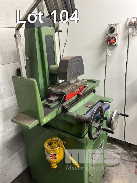 INGAR SURFACE GRINDER 'SPAIN' MODEL: RT6-12, 415V WITH 300 x 150mm SELTER, MAGNETIC CHUCK, HAND PUMP OILER, ASSORTED SPARE STONES, ON CABINET, HALOGEN LIGHT