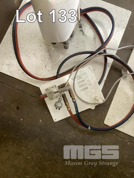 PNEUMATIC RISE & FALL ROTATING WORKSTATION, NEW, INCLUDES RAMS, AIR LINES, CONTROL VALVE, IDEAL PAINTING OR WELDING FABRICATION STAND