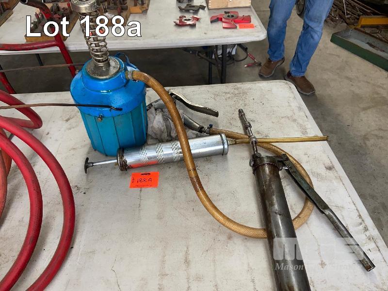 2kg GREASE PUMP, HOSE, GUN, MACNAUGHT GREASE GUN & OIL DRAIN PUMP