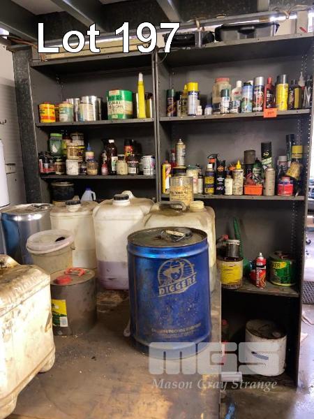 LARGE QUANTITY SOLVENTS,GUN WASH , OILS, AEROSOL SPRAYS, CONTENTS OF TABLE & 2 x SHELF UNITS, INCLUDES SHELVES & TABLE