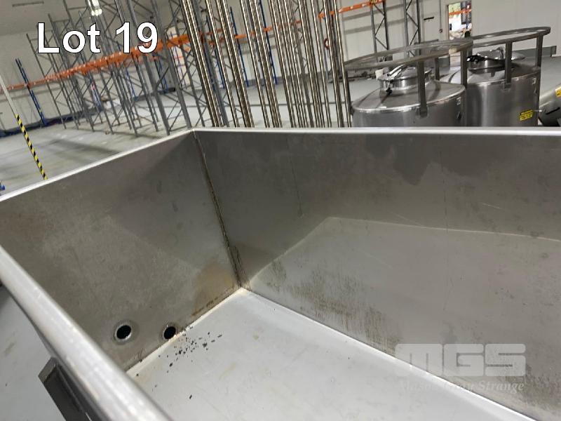 STAINLESS STEEL TANK, OPEN TOP, ELEVATED 500 x 900 x 500mm TOTAL HEIGHT: 2000mm MOBILE