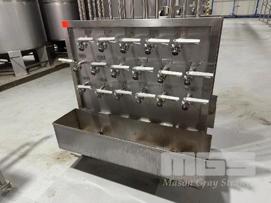 STAINLESS STEEL MANIFOLD STAND WITH 17 KEY STONE 1" VALVES & SPILL TRAY NOTE: PIPEWORK TO CEILING ONLY
