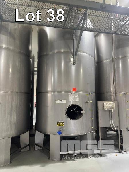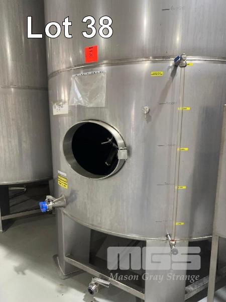 STAINLESS STEEL UPRIGHT TANK, 15,000 LITRE CONE BOTTOM ON LEGS LEVEL GAUGE TO 5,000 LITRE BOTTOM & SIDE OUTLET VALVES INCLUDES CIG REGULATOR, FITTING & LIFTING LUGS